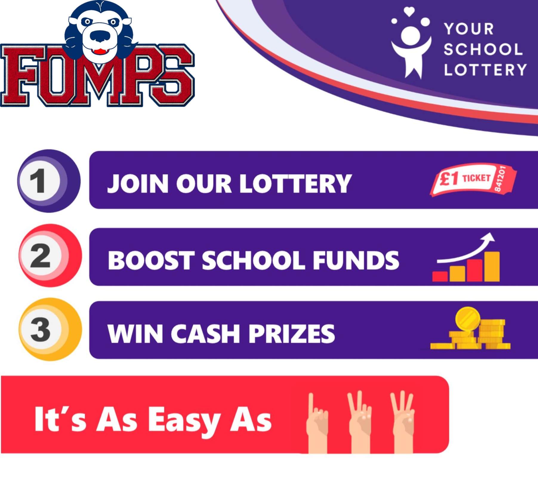 Buy your school lottery tickets here for the chance to WIN weekly cash prizes and a shot at the £25k JACKPOT